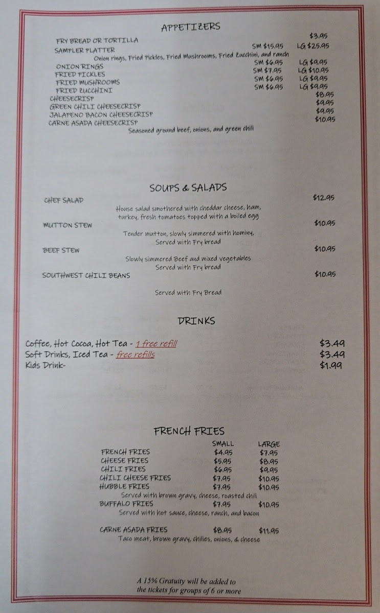 In conclusion, the menu at Keams Canyon Cafe is a well-rounded selection that caters to all tastes, from classic comfort food to unique specialties, making it a great dining destination.